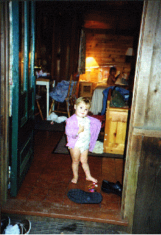 The lovely, shimmering Zola beckons in the doorway of a cabin in big sur.